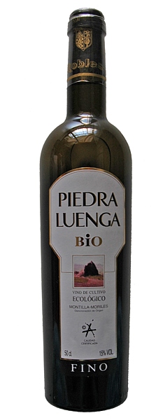 fino ecológico Piedra Luenga. Denominación de Origen: Montilla Moriles. Graduación: 15 grados. Características: Color: Amarillo pajizo, pálido y brillante con